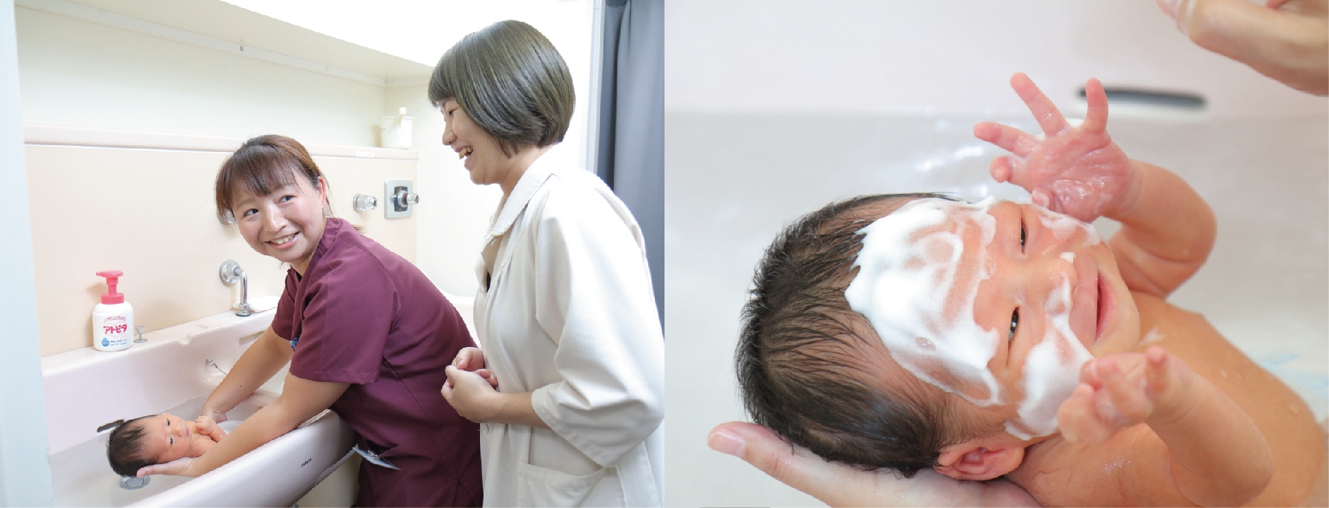 そんなママやパパの不安にお答えするため、アトピタは医師・専門家監修による育児情報サイト「ベビーカレンダー」とタイアップ。泡ソープの配布先でもある「シミズマタニティクリニック」の沐浴指導にママと一緒に参加し、沐浴の方法や赤ちゃんの肌をやさしく洗うためのベビー用洗浄料の選び方を、医師監修のもとご紹介します。