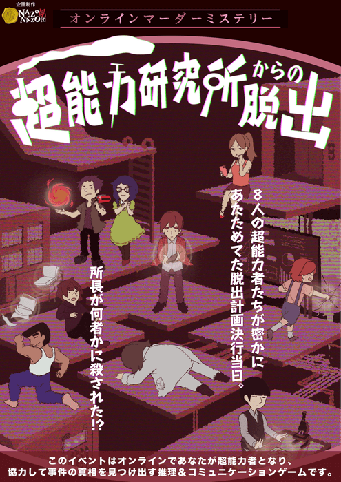名 称:オンライン型謎解き×マーダーミステリー「超能力研究所からの脱出」