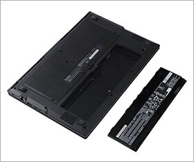 また、本製品に付属する標準バッテリー(電力容量 37WH)のほか、交換用バッテリーとして標準バッテリーよりも大容量のバッテリー(電力容量 55WH)をオプションでご用意いたしました。