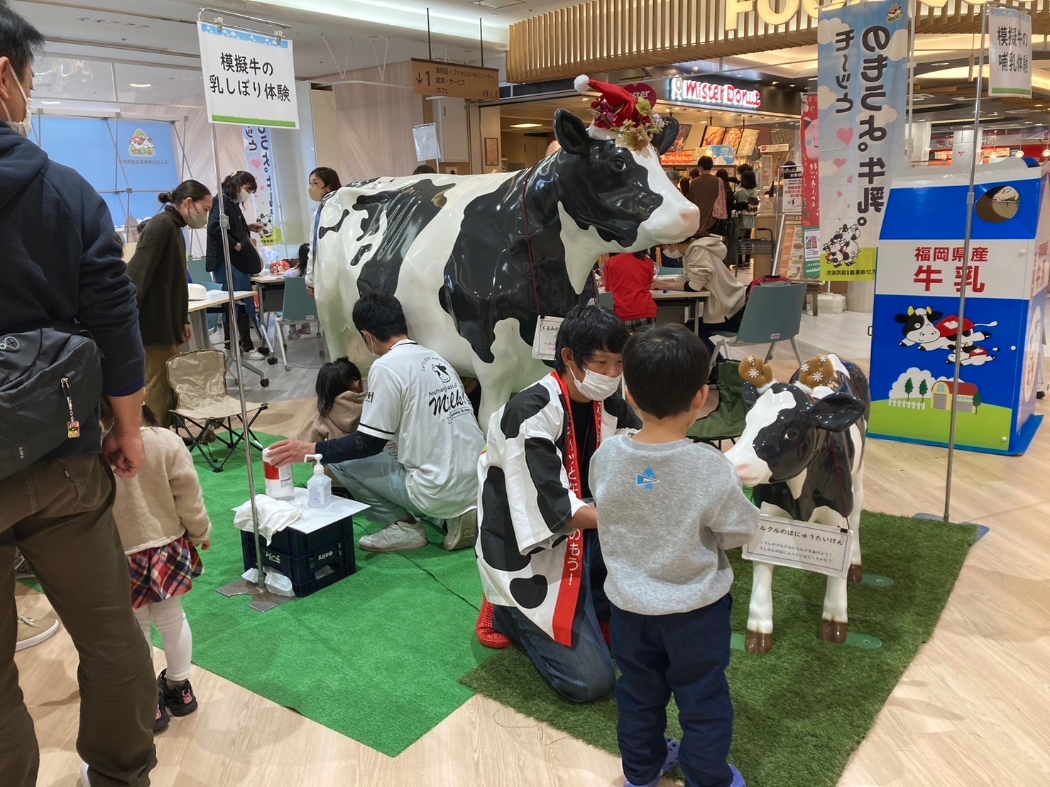 福岡県産牛乳の普及活動として県内商業施設にて、福岡県産牛乳を使ったバター作り体験、模擬牛の乳しぼり体験などのイベントを行っております。