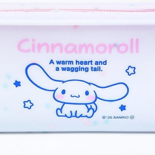 シナモロールの周りにはキラキラの星が散りばめられています。ペンケースとしてお使いいただく際には、ペンの取り出しがスムーズで使いやすい!