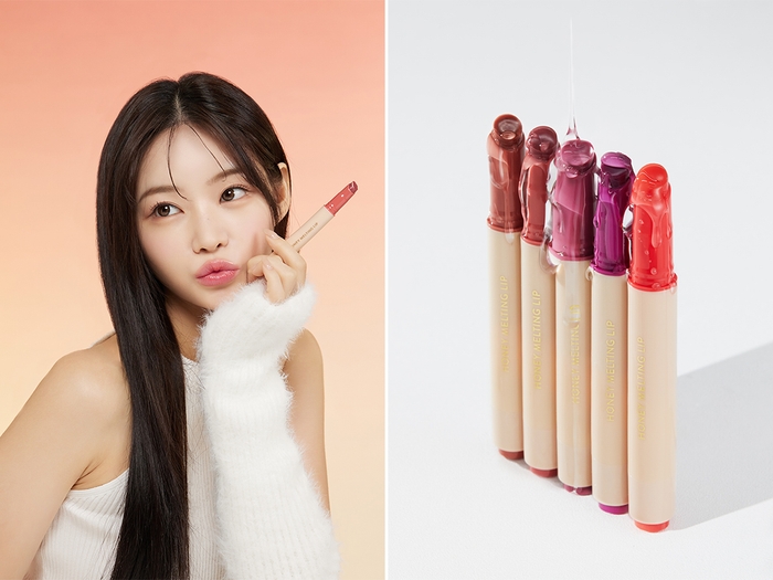 「ハニーメルティングリップ」は唇に蜂蜜を塗ったような光沢を感じられるリップスティックで、8種類の天然由来オイルとマヌカハニー(ハチミツ)エキス、バラエキスを配合。唇にナチュラルなツヤ感を与えて、乾燥しがちな唇をしっかり保湿しケアしてくれます。また、唇の温度に反応する「ソフトメルティングフォーミュラ」技術を採用し、ひと塗りで唇の上でとろけて密着しぷっくりボリューム感のある唇を演出します。リップグロスを塗ったようにベタつかずに唇の潤いが長持ちすることが特徴です。