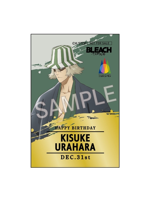 イベント開催期間中に誕生日を迎えるキャラクターをお祝いする限定イベント。第4弾は年末年始に誕生日を迎える3名のキャラクター、コン(12月30日生)、浦原喜助(12月31日生)、四楓院夜一(1月1日生)のお祝いに、期間中に来場された方には、ご希望のバースデーイベント限定ノベルティをプレゼントいたします。
