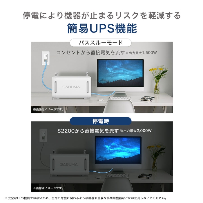 その他、パススルーモードで機器に給電することで、停電時に止まってしまうリスクが軽減されます。