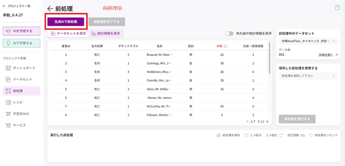 データサイエンスの専門知識がないユーザーでも、ワンクリックで前処理を完了できます。