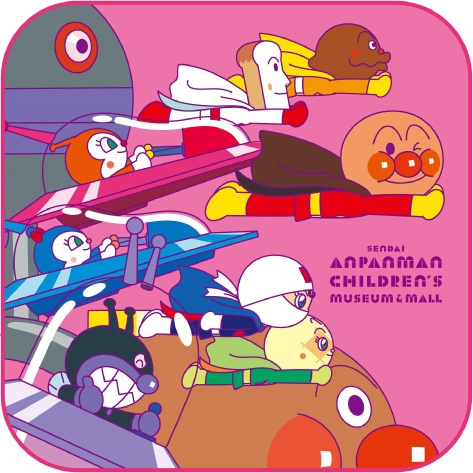 アンパンマンたちがみんなで勢いよく飛んでいくアートを使ったグッズは、仙台アンパンマンこどもミュージアムだけの限定です。