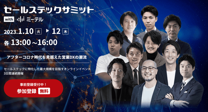 日報共有サービス「日報アプリgamba!(ガンバ)」を提供する株式会社gamba(本社:東京都千代田区、代表:森田昌宏以下 「gamba」)は、セールステックに特化した『セールステックサミット with ミーテル』をオンラインにて1月10日(火)〜1月12日(木)に参加します。