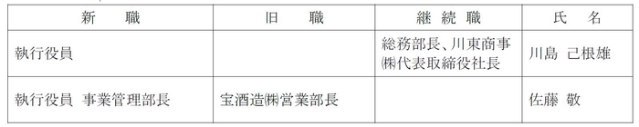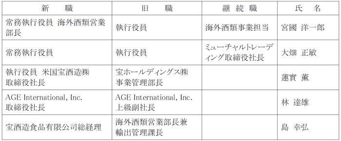 宝ホールディングス株式会社およびグループ会社では、4月1日付で人事異動をおこないます。