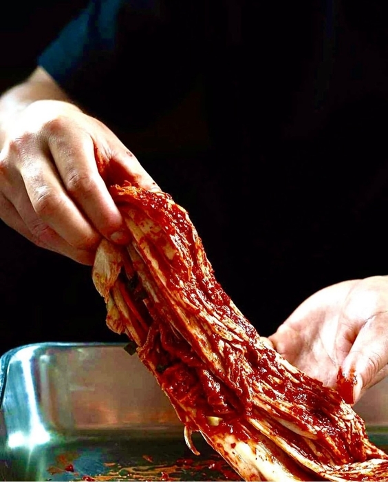 日本酒やアミエビの塩辛などを使い、日韓の伝統を掛け合わせたキムチの