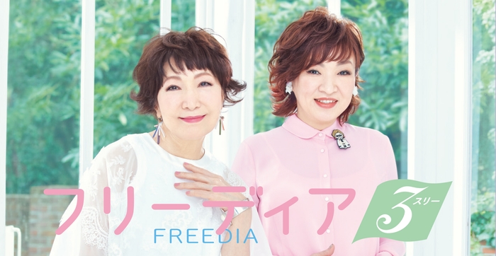 森山良子さんと清水ミチコさんの楽しいおしゃべりでお届けする「フリーディア3」新CMはハッピー感満載。元気で若々しい印象をつくる髪のおしゃれという新たなウィッグの楽しみ方を、レディースアートネイチャーは提供します。