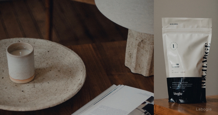 「Labogie」は、キャンドルの新しい楽しみ方を提案するフランス発のオーガニックキャンドルブランド。アロマキャンドルには、大豆由来のワックス(植物性油)をベースに植物由来の香料を使用。フタル酸エステル、発がん性物質は含まれていません。また、キャンドルを入れる器はボルドーの工房で陶芸職人がひとつひとつ丁寧に手づくりしたもの。「Labogie」は、使い捨て文化を終わらせることに情熱を注いでおり、溶かして器に追加できるリフィルもご用意しています。