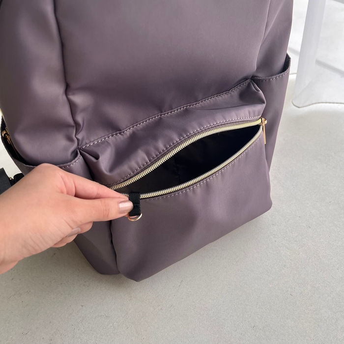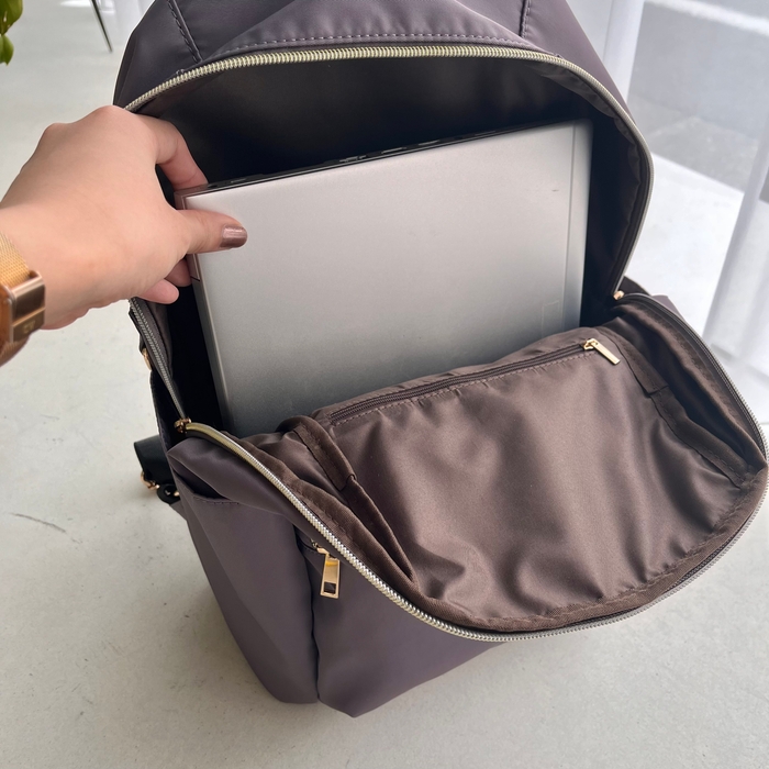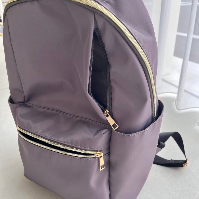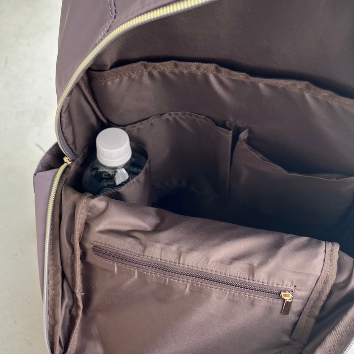 ゴールドのファスナーがキレイめな印象で、大人の女性がデイリーに使いやすいリュックとなっております。