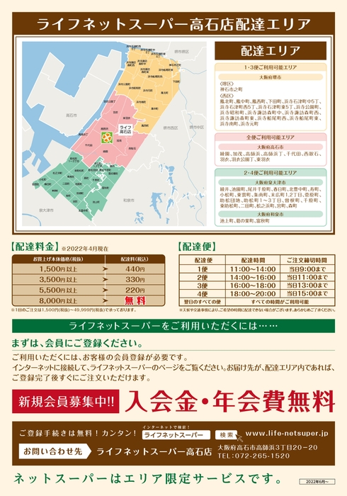 ご注文いただいた商品を店舗からご自宅へお届け「ライフネットスーパー高石店」サービス開始【高石市内・堺市内・和泉市内の配達エリアを拡大、泉大津市内の一部地域でもご利用可能に!】