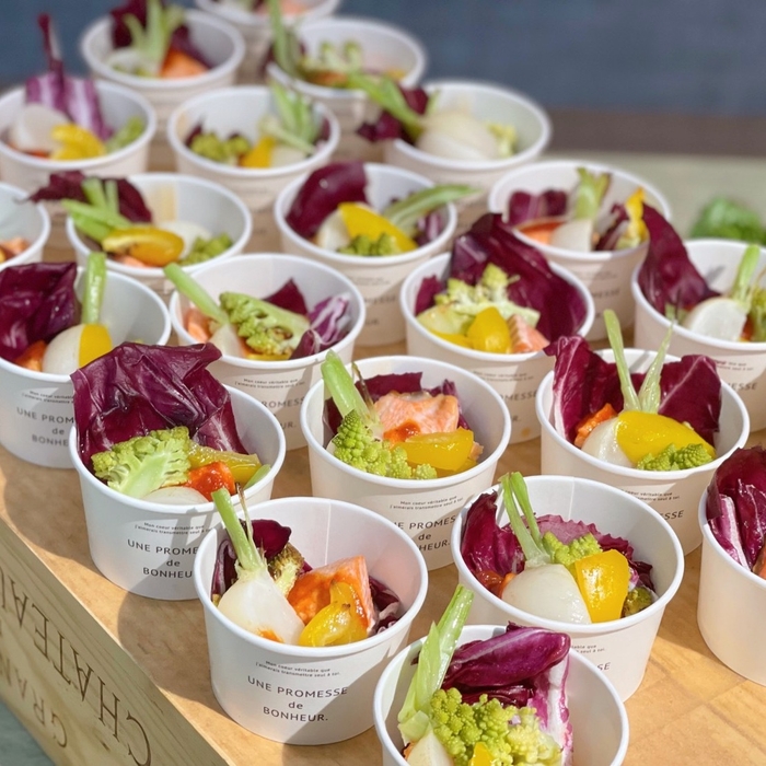 料理は一品一品とって食べやすいカップや、フィンガーフード、ピンチョス形式での提供が可能です。