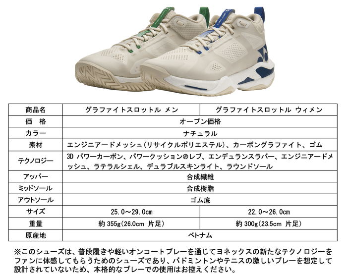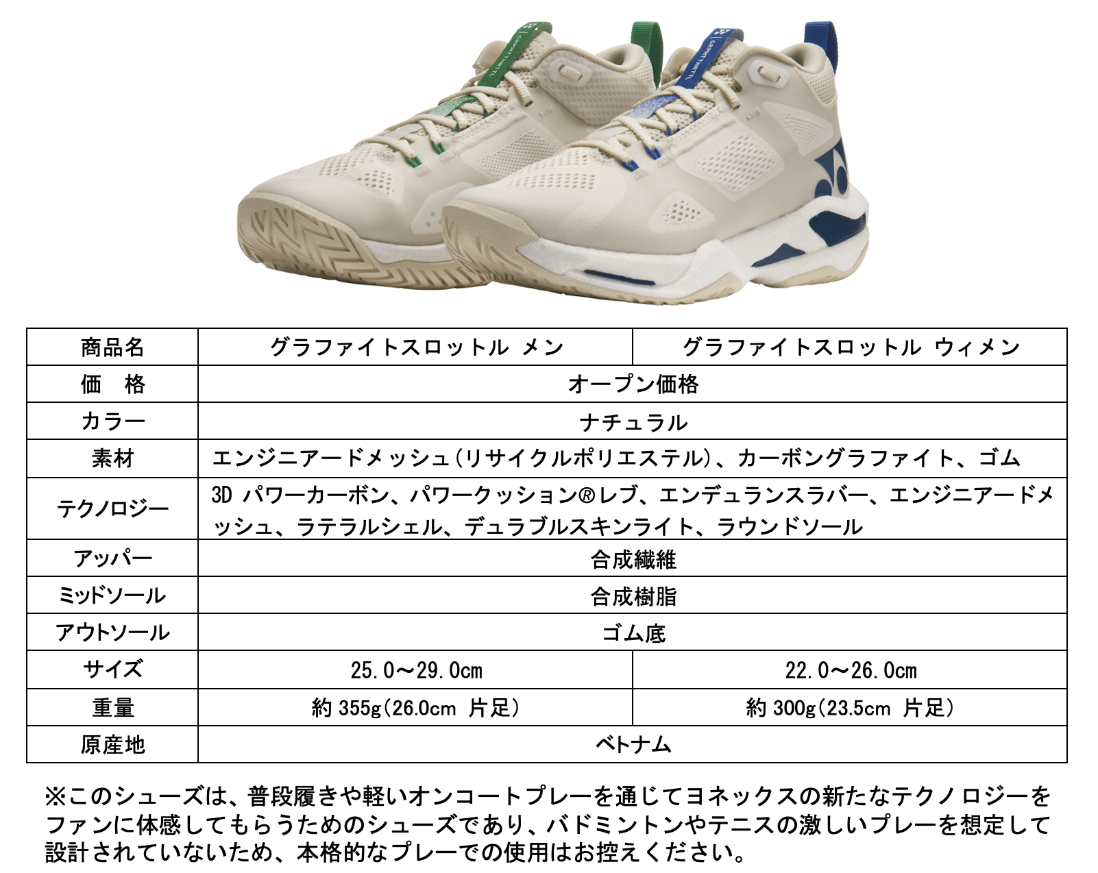 本製品は、ヨネックスの最新素材「POWER CUSHION® REV」と「3D POWER CARBON」を結合させた新構造「Grpht Thrttl」を最大限に体感できるコンセプトシューズです。