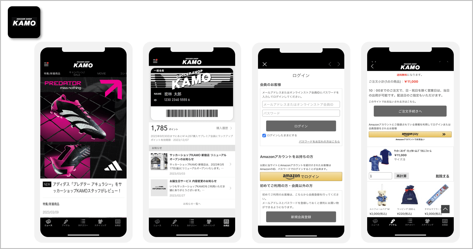 「サッカーショップKAMO」の公式アプリ:https://www.sskamo.co.jp/s/pages/kamo-app.aspx