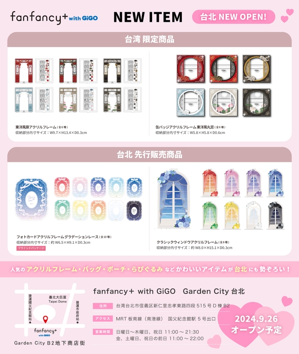 今回、海外初となる「fanfancy+ with GiGO Garden City台北」は、台北市の中心、台湾初のドーム球場として2023年12月に開業した「台北ドーム」に隣接した台湾中心部では最大規模のショッピングセンター「遠東ガーデンシティ」のD棟地下2階にオープンします。