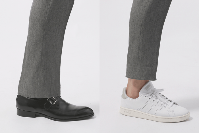 第1弾企画は、ビジネススタイルの多様化から、コーディネートに合わせてワンタッチで丈の長さを調整できる手軽さと汎用性から好評を得ました。この第2弾企画では、実際に購入いただいたお客様からの声と当社の採寸データを取り入れて改良を加えています。股下サイズは、多くの方が裾直しをせずにそのまま履けるジャスト丈と折り返して5㎝短いショート丈に調整できる仕様となっています。これにより、1本で革靴に合わせたかっちりとしたスタイルとスニーカー通勤などのカジュアルなスタイルの着こなしが可能です。また、折り返す際に使うスナップボタンの位置を、これまでの左右2か所からつま先側とかかと側の計4か所に変更し、さらにフラットなボタンデザインにすることで、着脱時の引っ掛かりやスナップが外れてしまうといったストレスを解消しています。その他にも、タテ・ヨコの動きに合わせて生地が伸縮する2WAYストレッチを新たに採用し、快適な履き心地に仕上がっています。