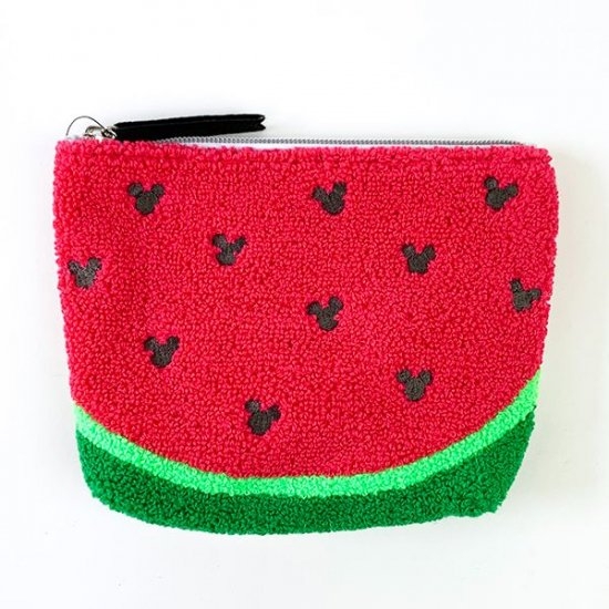 同じく赤繋がりでスイカデザインもございます。スイカがそのままポーチになったちょっと美味しそうなポーチ♡スイカの種が隠れミッキーになっているキュートさも素敵です。(隠れてないかな?)