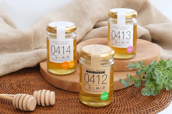 蜂蜜は「蜜源、場所、時期」などによって味わいがそれぞれ異なります。その異なる"オリジン"を持つ蜂蜜を、個性そのままに瓶詰したのが「シングルオリジンハニー」。ハニーハンター市川拓三郎が世界中からいろいろな蜂蜜を集め、世界20か国、日本20都道府県以上から100種類を超える蜂蜜を取り揃えています。