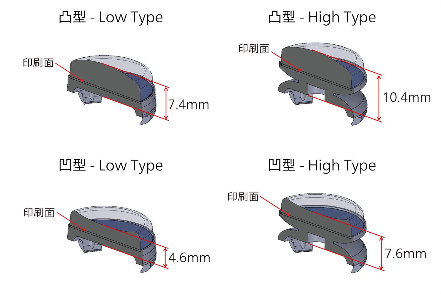 それぞれにグリップ面が凸型と凹型の2種類をラインアップしています。