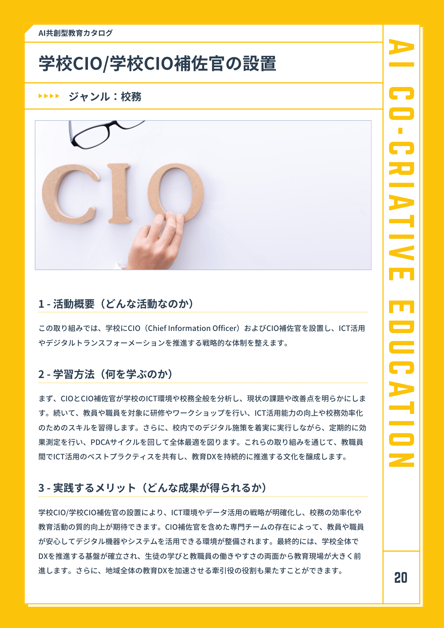 両カタログは、学校現場のDX推進における具体的な実装方法と革新的なアイデアを集約した2種類の実践的ガイドラインです。合計72項目に及ぶ充実した内容により、各学校の状況に応じた最適なDX化の推進を支援します。両カタログを活用していただくことで、生徒の学びの質向上と教職員の働き方改革の両立が期待できます。