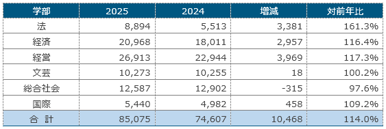 【学部別志願者数(一般入試)】