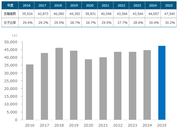 【女子志願者数の推移(一般入試)】