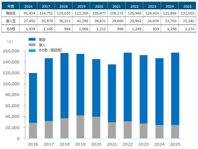 【現役生・浪人生志願者数の推移(一般入試)】