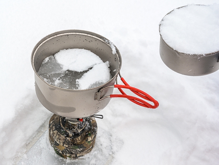 また、冬期にもTi U.L.Potは最適です。0.3㎜厚のチタン材は熱の伝達スピードが速く、他のクッカーと比べると素早く雪を解かすことが出来ます。