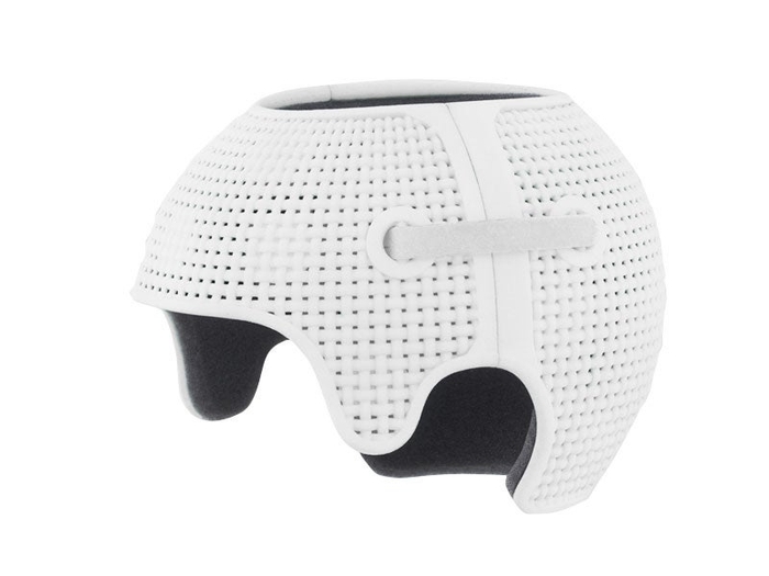 生後2カ月から8カ月のかわいい時期にもかかわらず、治療のためほぼ毎日装着しなければならない頭蓋形状矯正ヘルメット。わが子のかわいらしい写真を撮りたいというお母さんの強い要望に応えて作られた、かわいいメッシュ型ニット帽子風の外観を持つヘルメットである。メッシュで構成された全面は高い通気性で頭がムレにくく、個々の赤ちゃんに合うよう完全オーダーメイドによる最先端の3Dプリンターで出力される点も高く評価したい。「ゆがみ」が疾患としてあまり認識されていない現状で、この愛らしいヘルメットがきっかけで多くの人がこの疾患を知り、早期改善が可能であることを認知させたいという取り組み姿勢もすばらしい。