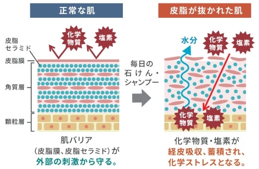 皮脂の少ない赤ちゃんや女性の粘膜質は、バリアが弱く常に化学物質に晒されています。