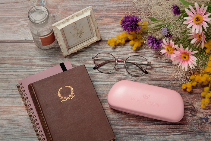 第2弾コレクションはメガネフレーム5型、ピンクを主軸としたカラーバリエーションで展開しています。デザインやカラー、メガネケースの細部に至るまでMaison de FLEUR監修のもと仕上げました。全国の眼鏡店でパリミキのみの限定販売です。