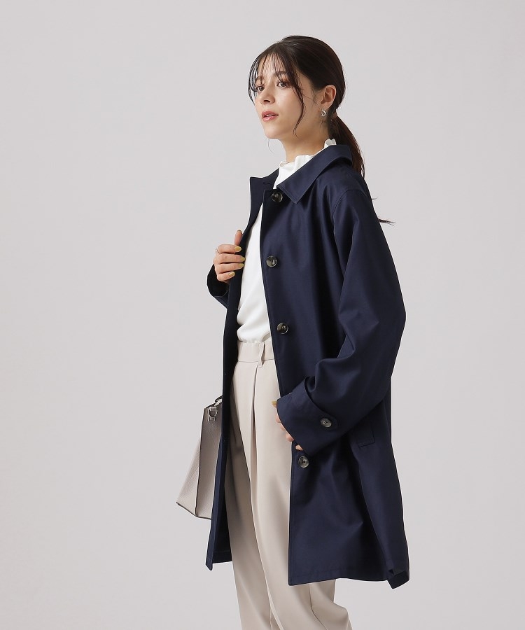 ●デザイン:少しゆとりのある身幅と程よい腕まわりのシルエットでサッとはおりやすく、オフィスからカジュアル、セレモニーまで活用できる万能コートです。