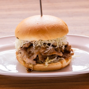生姜焼きの専門店として3年間浅草橋にて営業をしてきた「生姜キング」。がっつり男飯のお店だったこのお店を、もっと幅広い客層に広げたいと思い、考えついたのが姉妹店のハンバーグ専門店AOIで人気のハンバーガー。当初生姜焼きはハンバーガーには合わないだろうと思っておりましたが、物は試しに生姜焼きをバンズに挟んでみると、「う。うまい」。