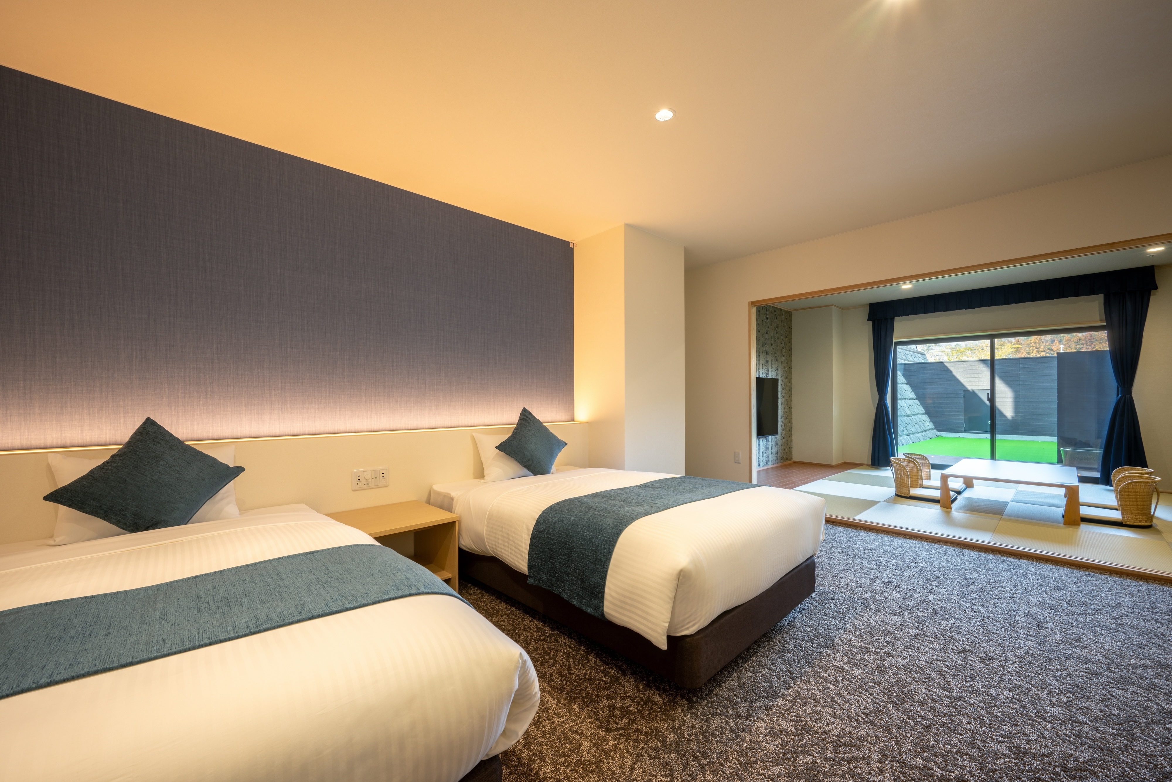 全室60m2以上の客室は広々とした和モダンな空間。大型犬ものびのびとご滞在いただけます。
