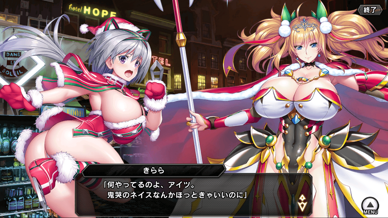 ストーリー:クリスマス、主人公は鬼崎きらら・御影小梅と一緒に、ヨミハラにある静流の店でアルバイト中。