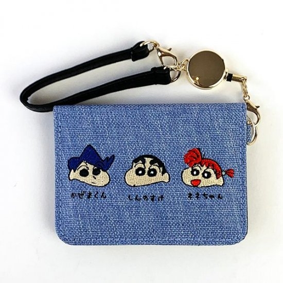 人気の2つ折りパスケースも登場です。それぞれのアイテムのサイズに合わせて登場するキャラが違いますが、パスケースにはしんちゃん&かざまくん&ネネちゃんの3人♪