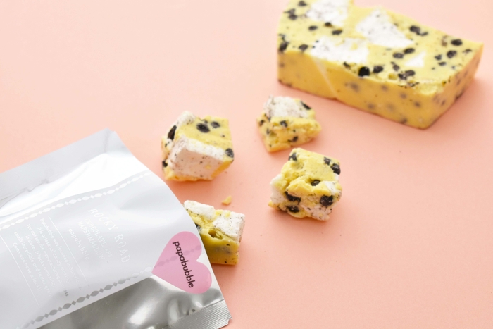 チョコレートのお菓子「ロッキーロード」からは、初恋の甘酸っぱさとほろ苦さを表現した「初恋レモンロッキーロード」が新発売。