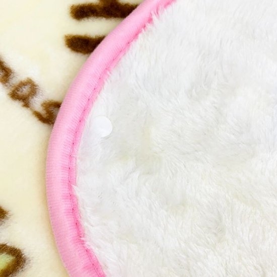 こちらのマイヤーブランケットにはスナップボタンが付いており、裏面はボア仕様とはまた違ったふわふわ感を楽しめます。なぜスナップボタンが付いているのかというと、、、