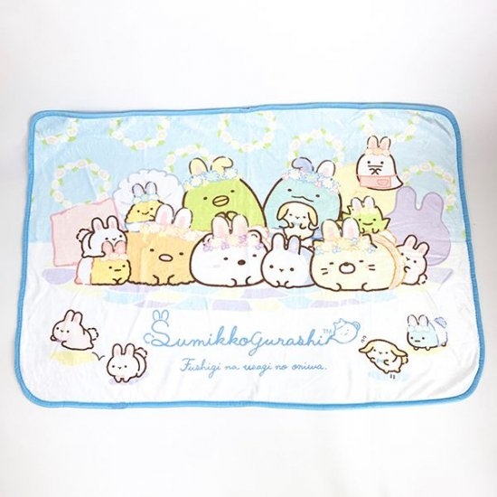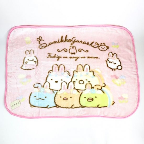 こちらはすみっコぐらしのキャラクターがうさぎになっているデザイン。ふわふわ生地が気持ちよいフランネルブランケットは、サイズも大きめなので1枚あると便利ですよ♪