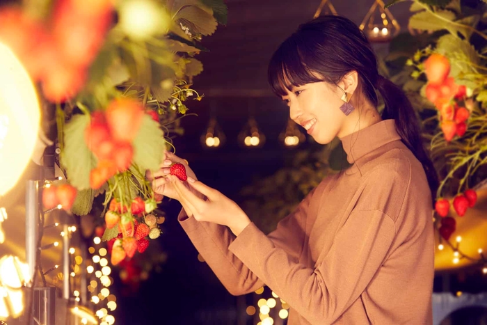 熱海の絶景と温泉に浸るリゾートホテル「星野リゾート リゾナーレ熱海」では、2023年1月6日~3月30日の偶数日、イルミネーション輝くハウスで行う夜のいちご狩り「ナイトストロベリーツアー」を開催します。1日1組限定で、静岡県生まれのいちご「紅ほっぺ」を心ゆくまで味わうことができます。10回目の開催となる今回は、紅ほっぺを楽しみ尽くすコンディメントが10種登場。摘みたての紅ほっぺを存分に堪能できる、贅沢な体験です。
