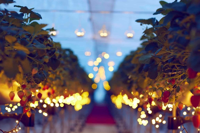2 イルミネーション輝くハウスを貸切りにして行う夜のいちご狩り