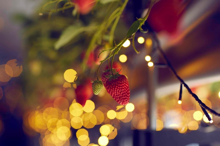 夕食後、客室に用意されたナイトストロベリーツアーの招待状を持ち、ホテルを出発します。向かう先はイルミネーション輝くハウスです。ハウスに入ると、レッドカーペットが敷かれた、いちごのレーンが並びます。ロゼシャンパンを片手にいちご狩りを楽しめるので、まるでパーティーに来たかのようなワクワクした気分になります。貸切りのハウスで心ゆくまで楽しめるいちご狩りです。