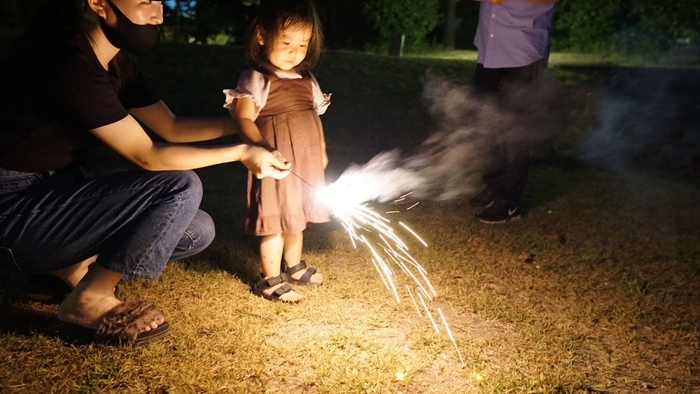 花火はファイヤーサークル内で安全に楽しむことができ、ランタンや虫除けの無料貸出サービスも行い、快適な環境で花火を満喫いただけます。