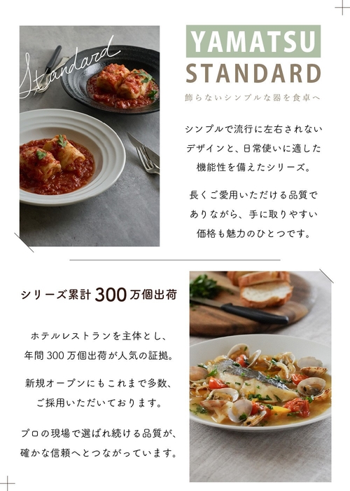 YAMATSU STANDARD ~飾らないシンプルを食卓へ~」ホテル・レストランに支持されるロングセラー美濃焼シリーズ