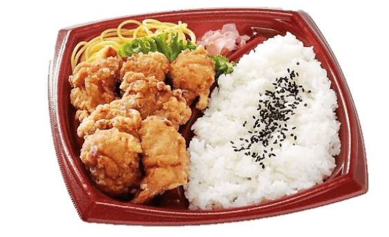 北海道産鶏肉を使用した「鶏ザンギ」と白ごはんがたっぷり入った、シンプルでボリューム満点のお弁当。