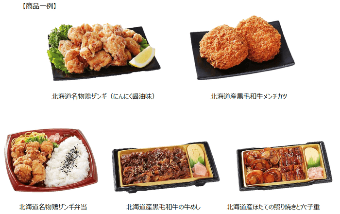 ご家庭で北海道旅気分をお楽しみいただけるような「北海道名物鶏ザンギ」や「北海道産黒毛和牛メンチカツ」、「北海道産黒毛和牛の牛めし」など、ご当地メニューをお届けいたします。