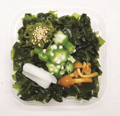 【内容】ネバネバ具材4種類(なめこ・オクラ・長芋・めかぶ)をトッピングしたサラダです。かつおだしを加えた柚子ポン酢でさっぱりとした味わいです。