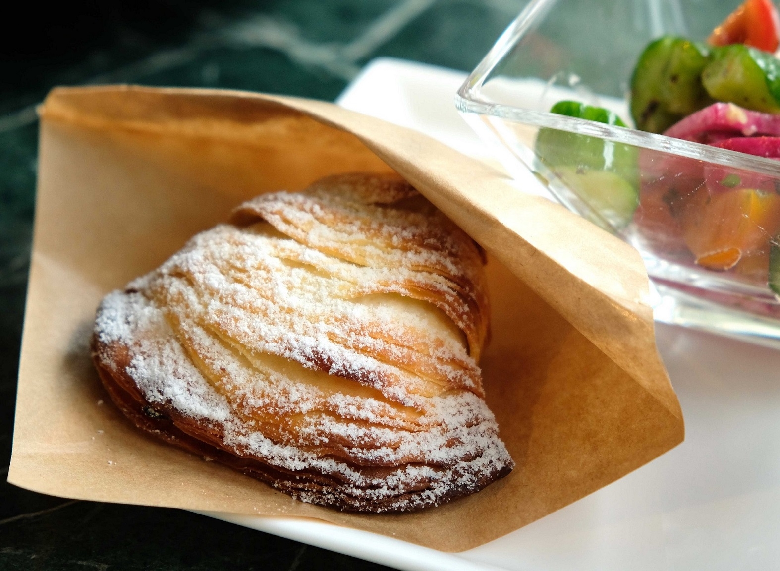 カラフルサラダと伝統菓子「スフォリアテッラ」